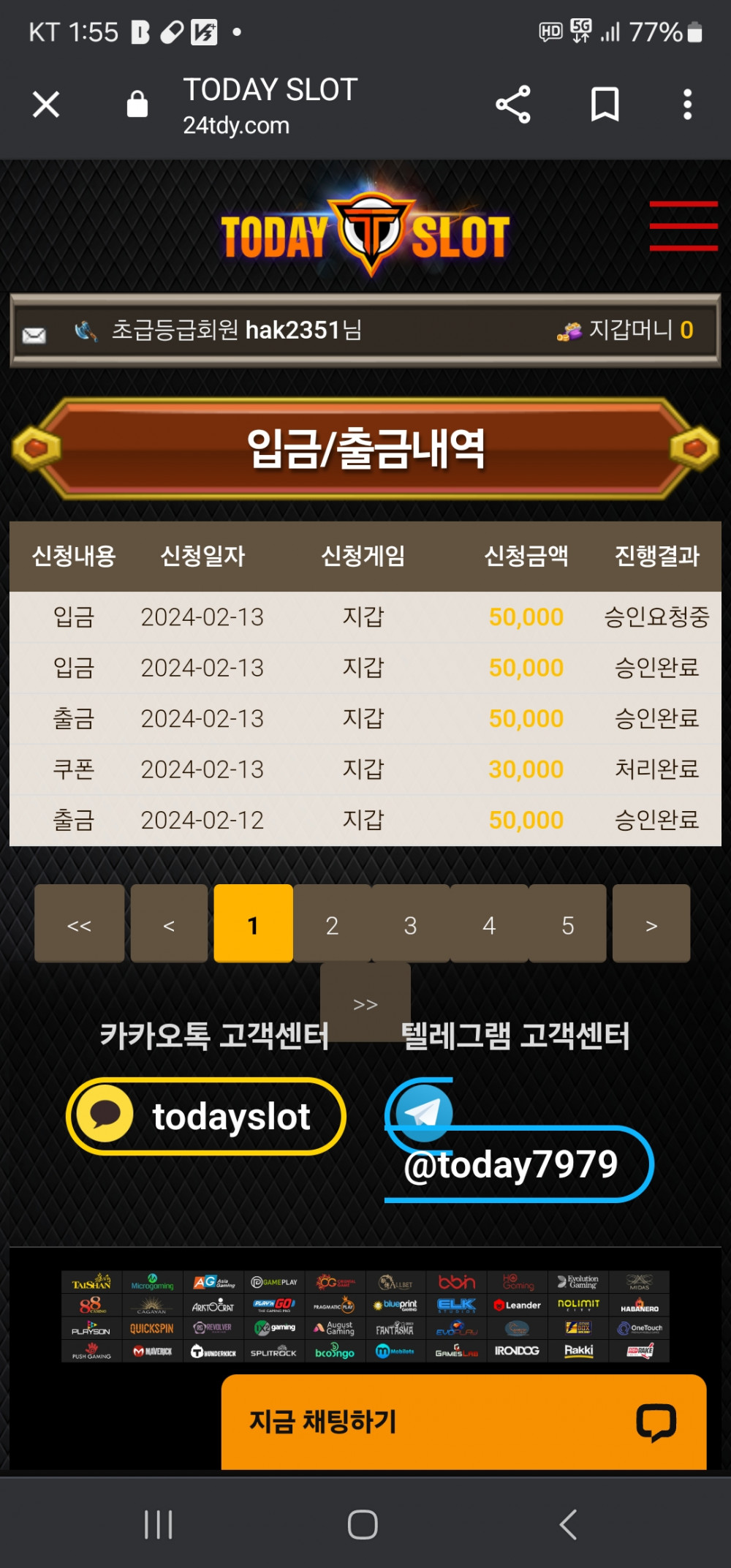 새벽에 프리스핀 쿠폰 받아서. 5출. 그대로 입금해서. 오링나고. 지금다시 5충 투데이 한번 줄때된듯한데..오늘이길..ㅋ