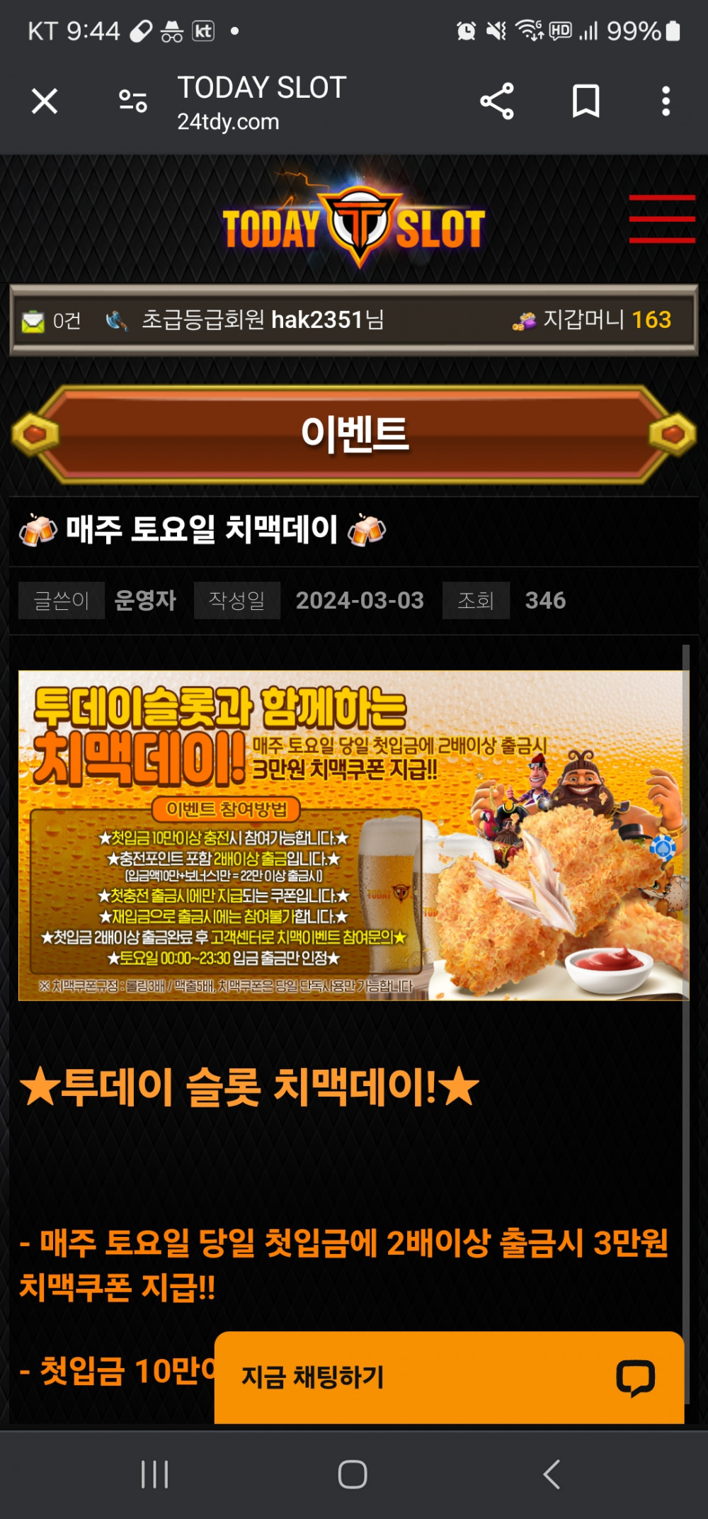 치맥데이 이벤. 참여한번 해봐야겠다. ㅋ. 5배출금이. 아쉽네요.