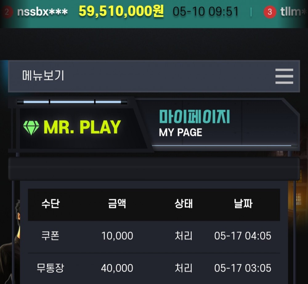 - 이벤트 포인트게임 랭킹 이벤트(종료)
